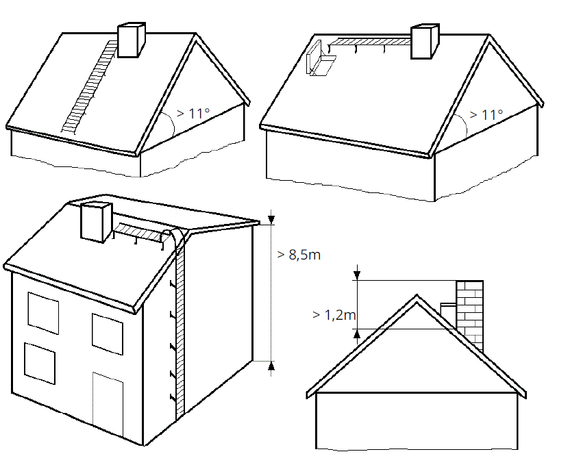 Viilakatuse korral peab korsten ulatuma vähemalt 0,8 m kõrgemale katuse pinnast. (EVS 812-3:2013)